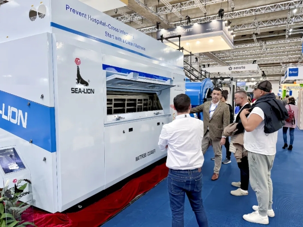 在2024法蘭克福國(guó)際紡織品專(zhuān)業(yè)處理展覽會(huì)(Texcare International 2024)的璀璨盛況中,11月6日這一天,德國(guó)法蘭克福展覽中心的8號(hào)展廳迎來(lái)了全球紡織業(yè)界的矚目焦點(diǎn),為紡織處理行業(yè)繪制了一幅充滿創(chuàng)新與活力的未來(lái)圖景。NO.1 現(xiàn)場(chǎng)動(dòng)態(tài)01 海獅現(xiàn)場(chǎng)在這場(chǎng)國(guó)際盛會(huì)中,江蘇海獅機(jī)械股份有限公司以其獨(dú)特的展位設(shè)計(jì)成為了展會(huì)